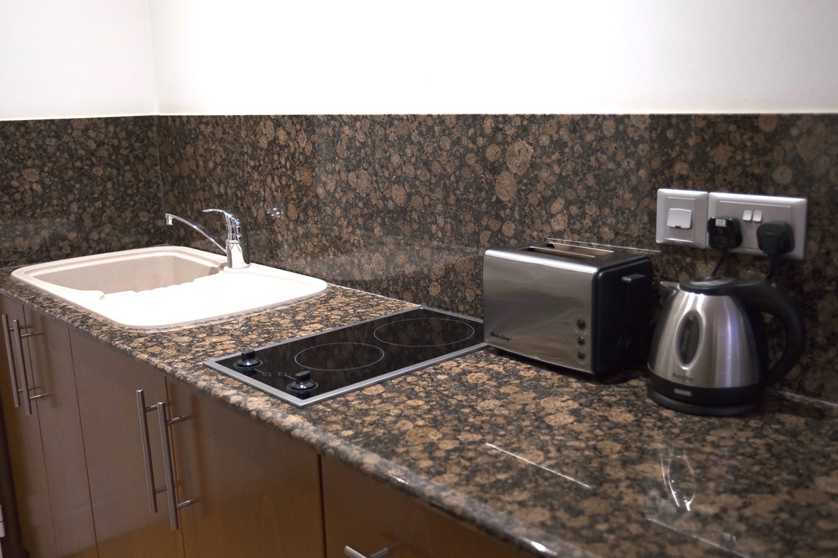 This deluxe apartment includes air conditioning, an LCD TV and a fully equipped kitchen with granite countertops.